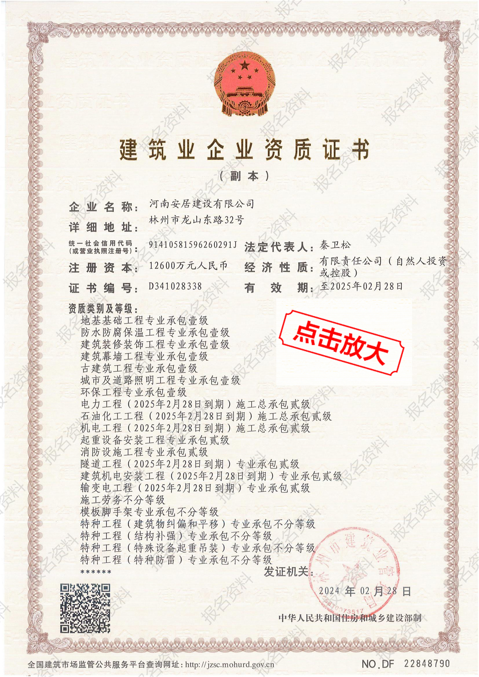 滔滔黃河哺育了中華民族拼搏向上的奮斗精神,巍巍太行造就了中原兒女的紅旗渠精神。百萬林州人下太行,鑄就了中國建筑之鄉(xiāng)響當當?shù)囊燮放啤:幽习簿咏ㄔO有限公司從誕生起血液里就流淌著紅色基因,秉承“安得廣夏千萬間,大庇天下寒士俱歡顏”的擔當精神,用鋼筋混凝土筑起了高樓大廈,也用一流品質(zhì)、家國情懷打造了安居建設的輝煌成績。公司成立于2012年,注冊資金12600萬元,公司成立至今,擁有建筑,市政施工總承包等十項一級資質(zhì);其他二級等資質(zhì)共二十余項。公司秉承質(zhì)量第一,服務為主,堅持垂直管理,從不設立分公司等分支機構。